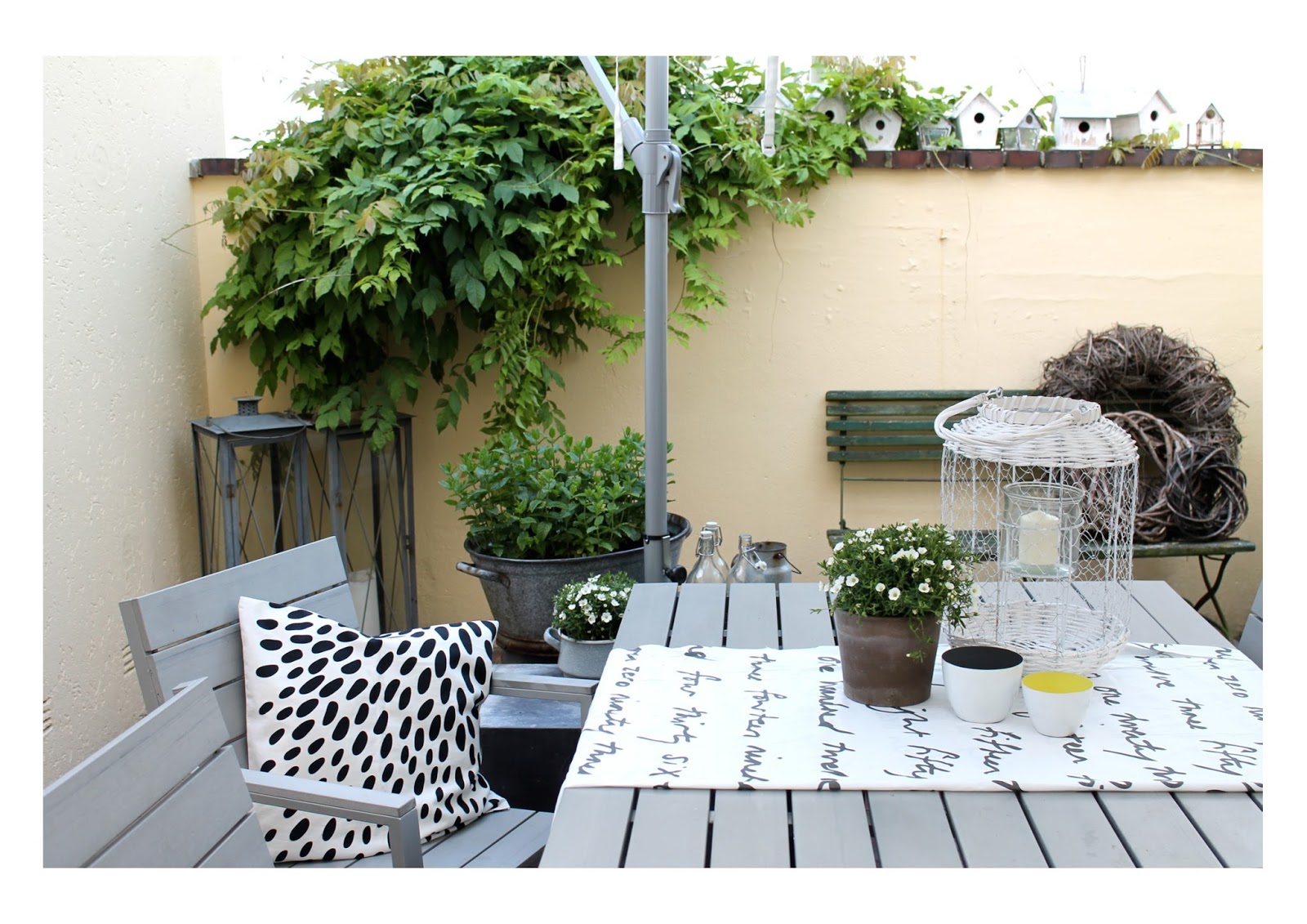 Beneidenswert schön sieht dein Innenhof aus! Und die Vogelhäuschen-Siedlung ist ja herzallerliebst.