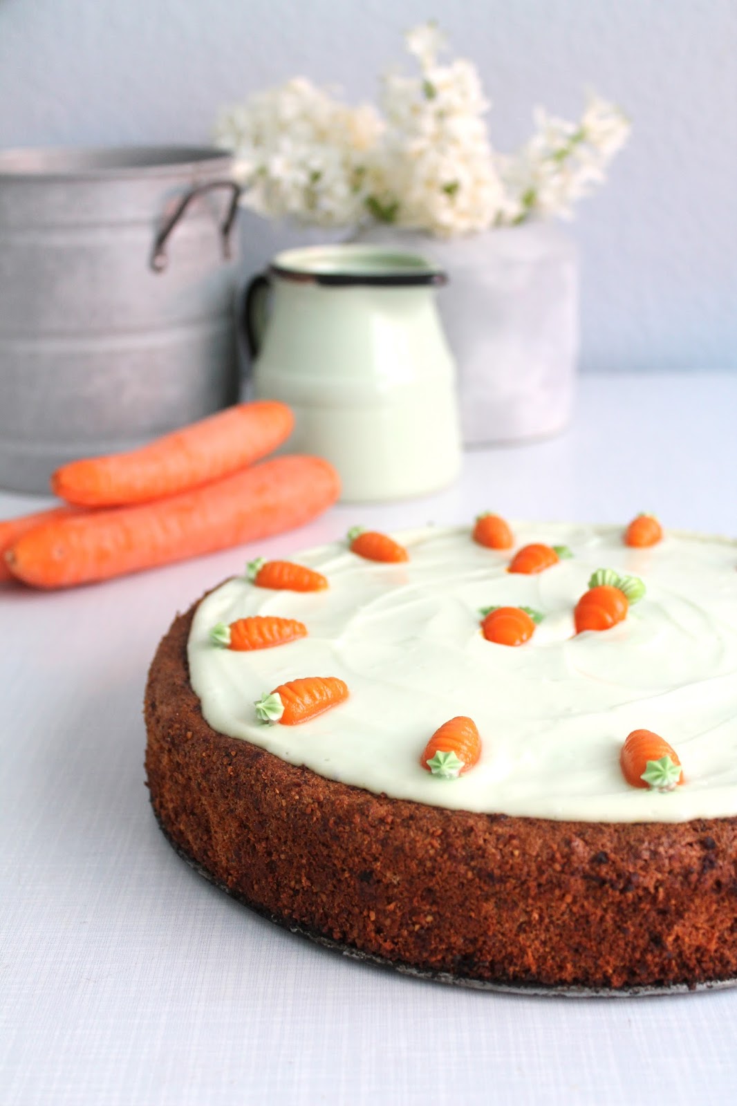 Ich gebe zu, es enstand auch tatsächlich mehr aus der Stimmung heraus ein paar Marzipanmöhren zu drappieren, als dass ich gemschmacklich jetzt soooo scharf drauf gewesen wäre…Wobei, ich wußte ja gar nicht mehr genau wie es sich im Mund so anfühlt, so ein Rüblikuchen. Heute kann ich sagen: Schmeckt schön! Ran an die Möhren, und los geht’s Leute….