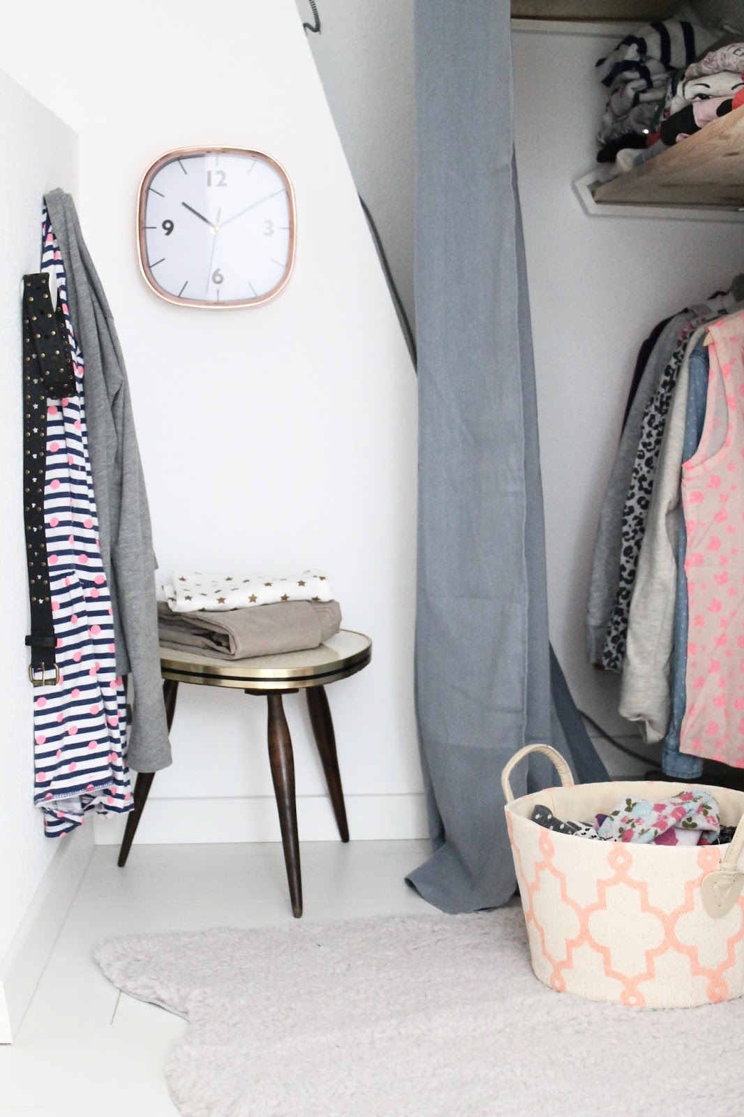Nun ja, und plötzlich…letzten Freitag hatte ich eine Eingebung und konnte mit all den Sachen die ich zuhause hatte ein kleines „walk-in-closet“ für sie bauen…hihi